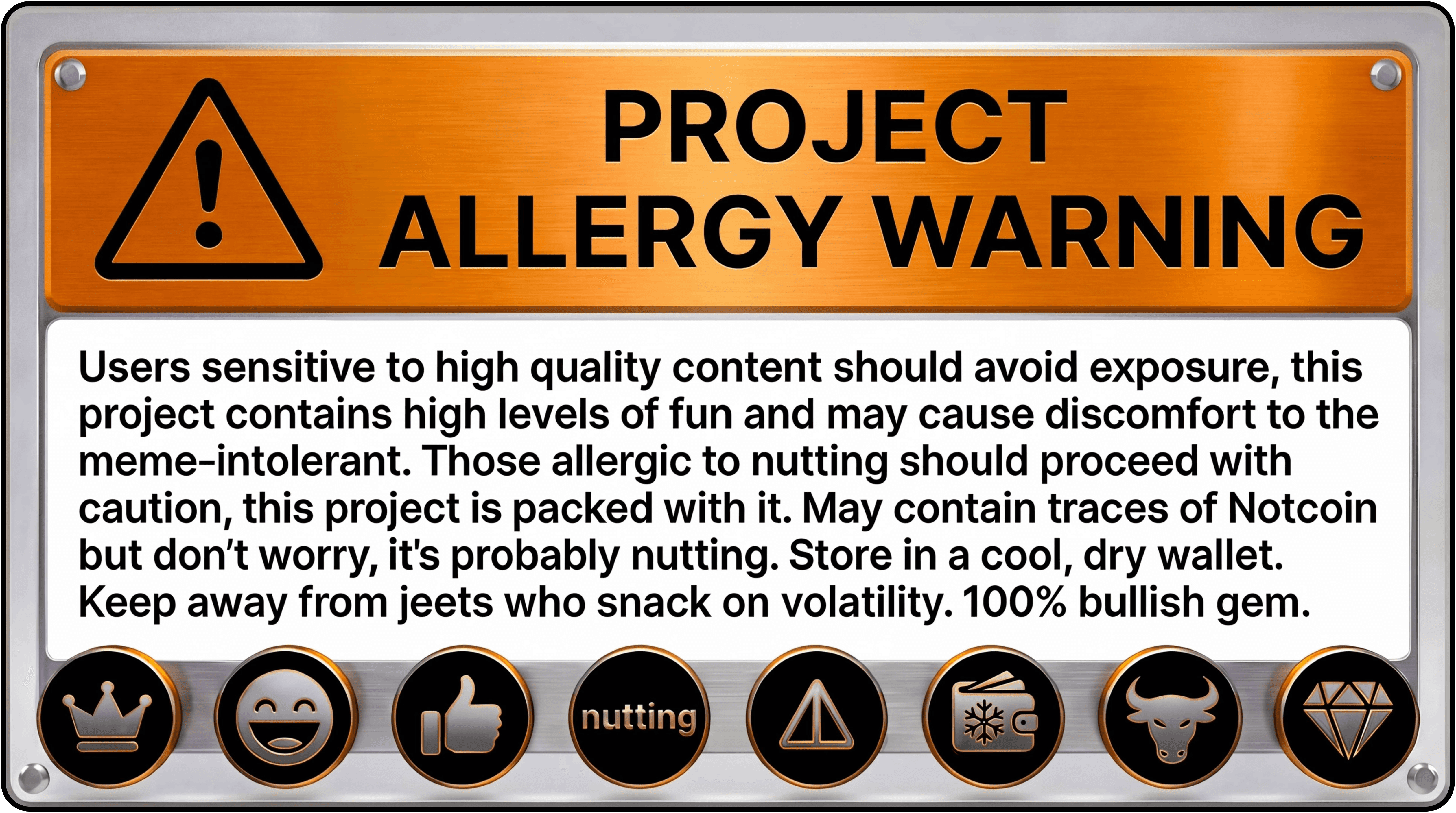 Nutcoin guarantees its project is totally free from any nasties that may affect those with certain types of crypto allergies. The ingredients are 100% pure and nutting is made from concentrate. Nutcoin is wholly run by the original founding team that deployed the contract in April 2024. Nutcoin has no formal association with Notcoin or TON and its $NUT token has no intrinsic value or expectation of future values or financial returns.